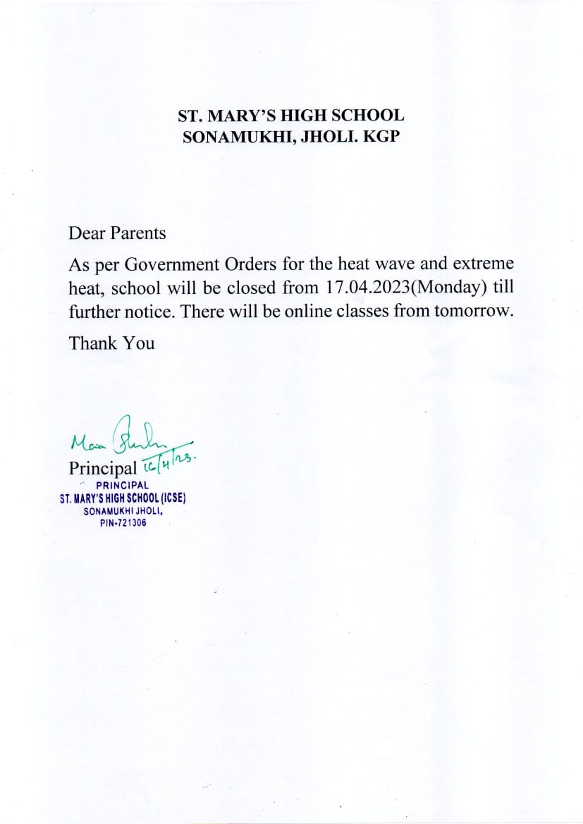 NOTICE FOR HOLIDAYS DUE TO HEAT WAVE |